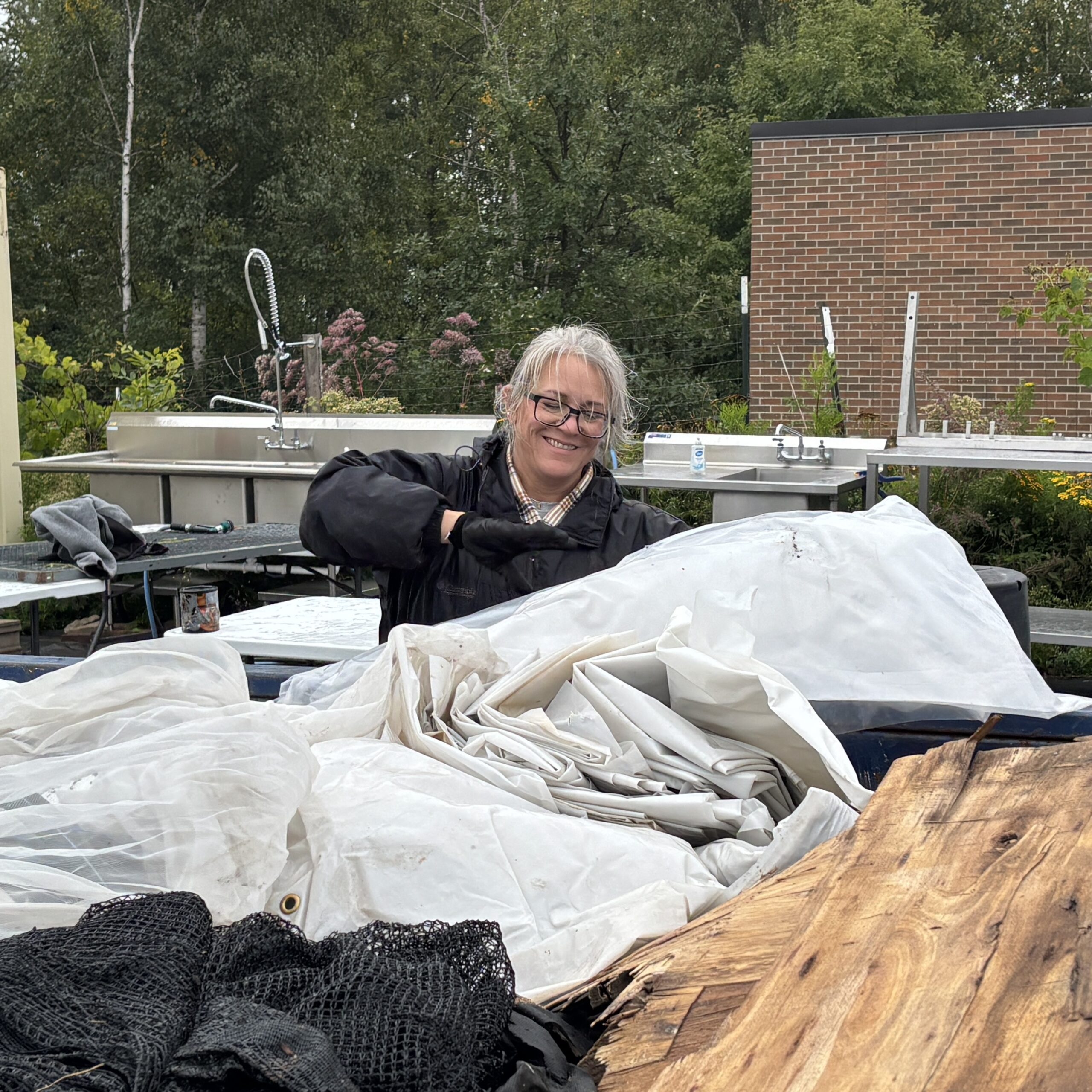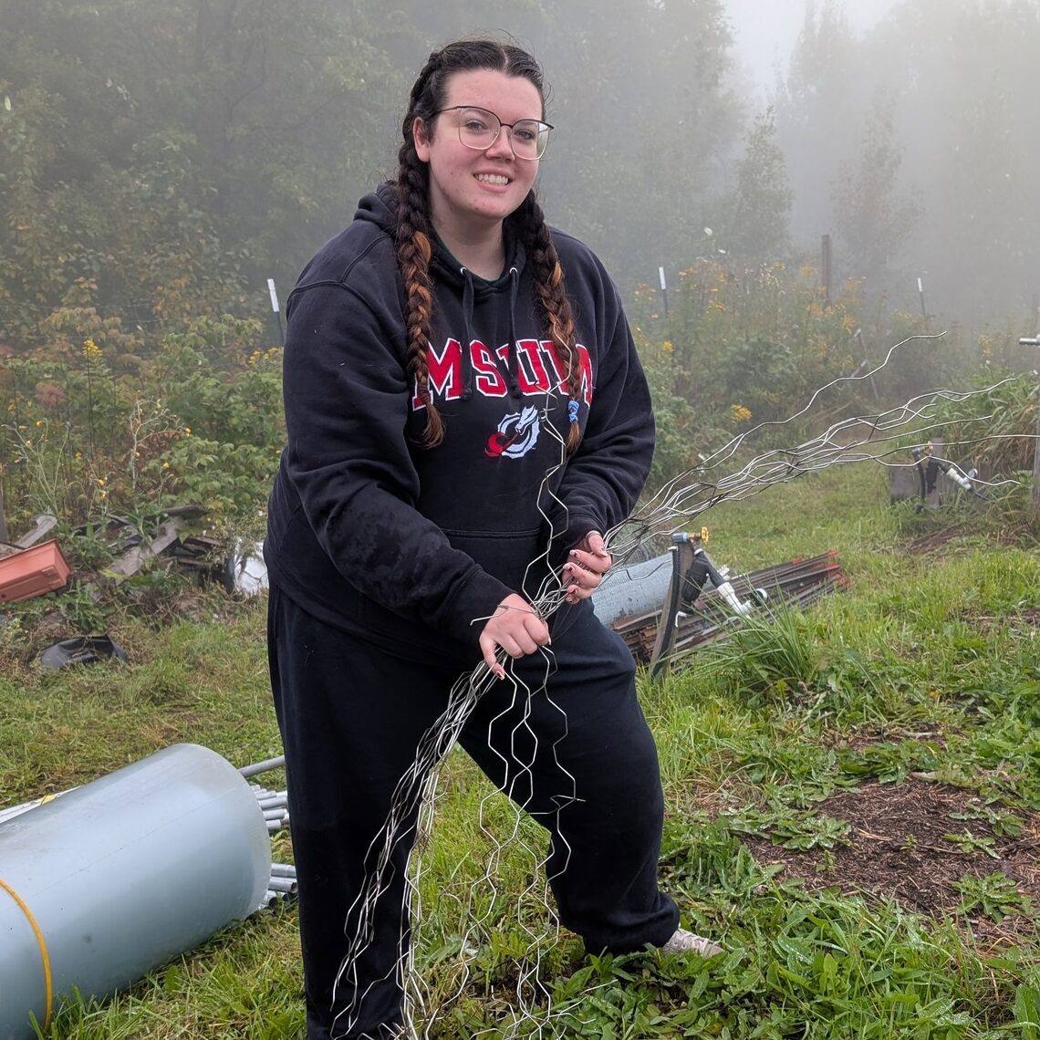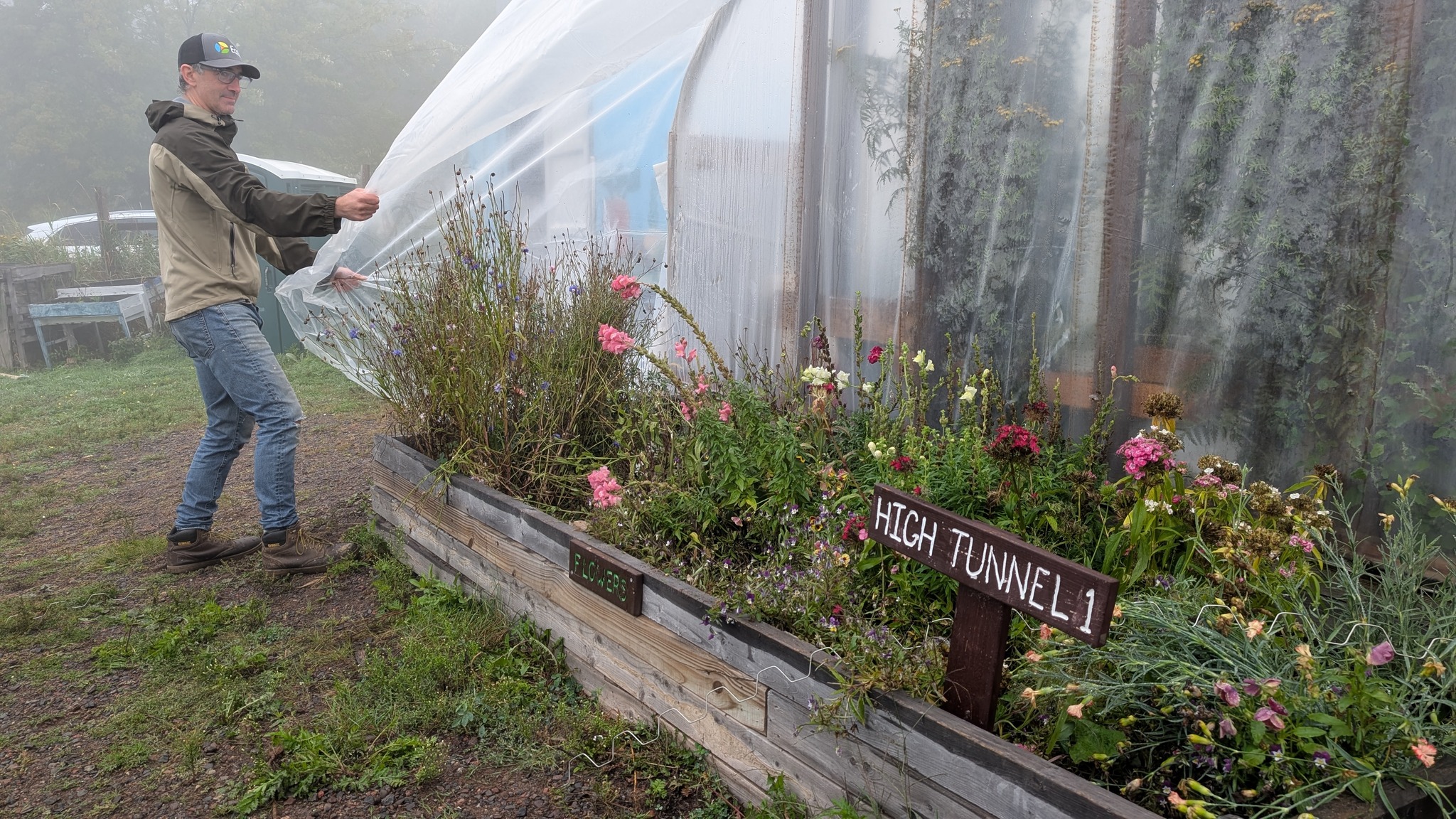The primary project for the Day of Service was replacing the plastic on the high tunnels, which needs to be replaced every five years due to normal wear and tear. To do this, AmeriCorps Members and staff placed a 4,000+ square foot sheet of plastic over High Tunnel One, cut it to the correct length on each side, and then secured the plastic on the sides. The goal was to replace the plastic on both high tunnels; however, due to the fog and dampness that day, the conditions were not ideal to finish the project. We also had some assistance from our friends at Agate Acres Farm. Thank you to Emily and Kylie for your help and guidance on how to replace our high tunnel plastic!