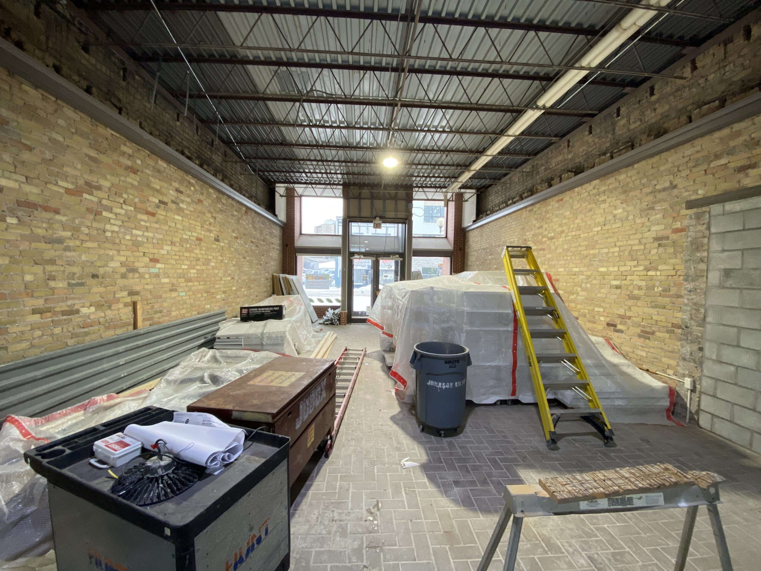 At the future grocery store site, otherwise known as the old Eco3 office at 2014 W Superior St, we replaced the leaking roof, tore out the old water-stained ceiling, and removed the non-functioning HVAC system.