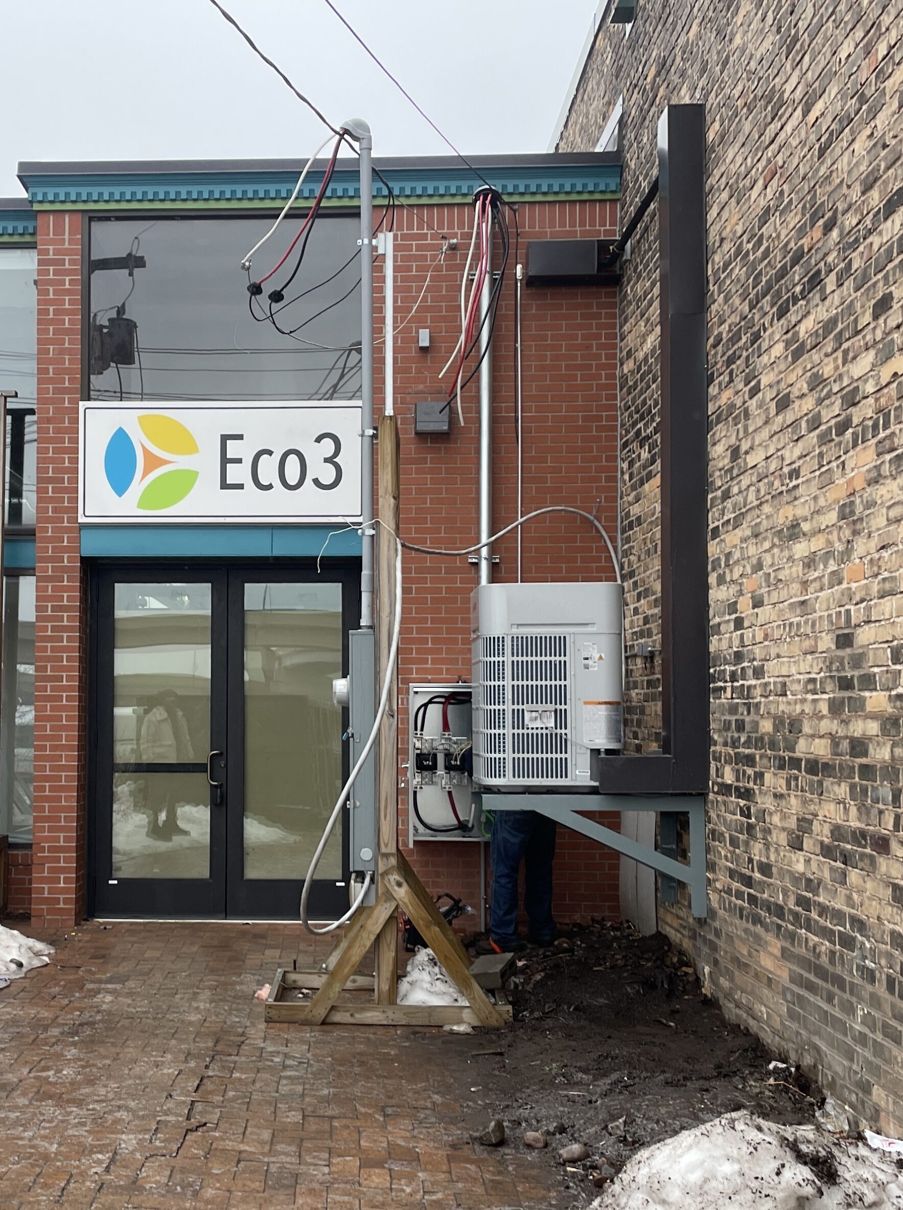- Completed our HVAC system with a new heat pump condenser unit behind the store. These units are very efficient, and you can find them in most of our buildings. The unit has been connected to the internal duct system.
