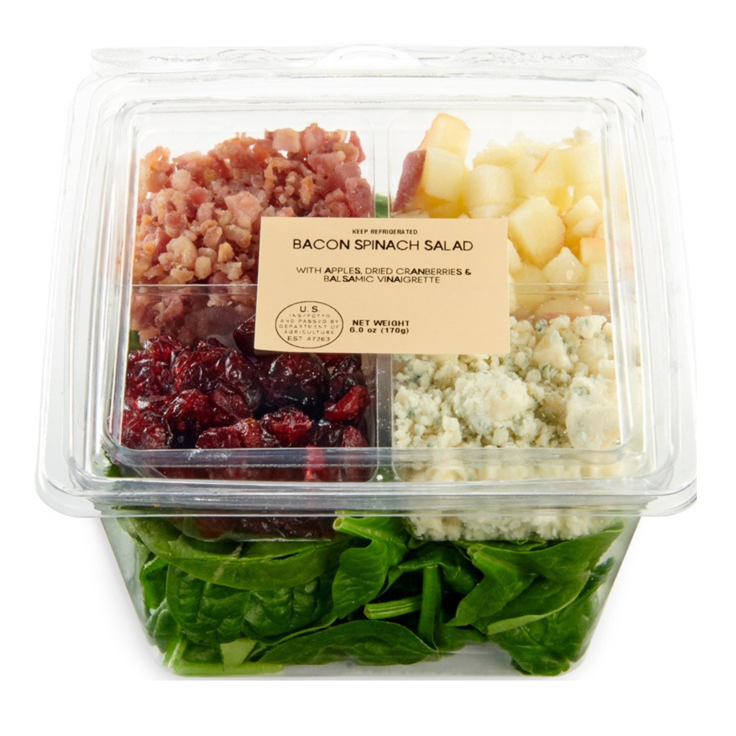 Spinach, bacon, blue cheese, dried cranberries, and red apples with balsamic vinaigrette.