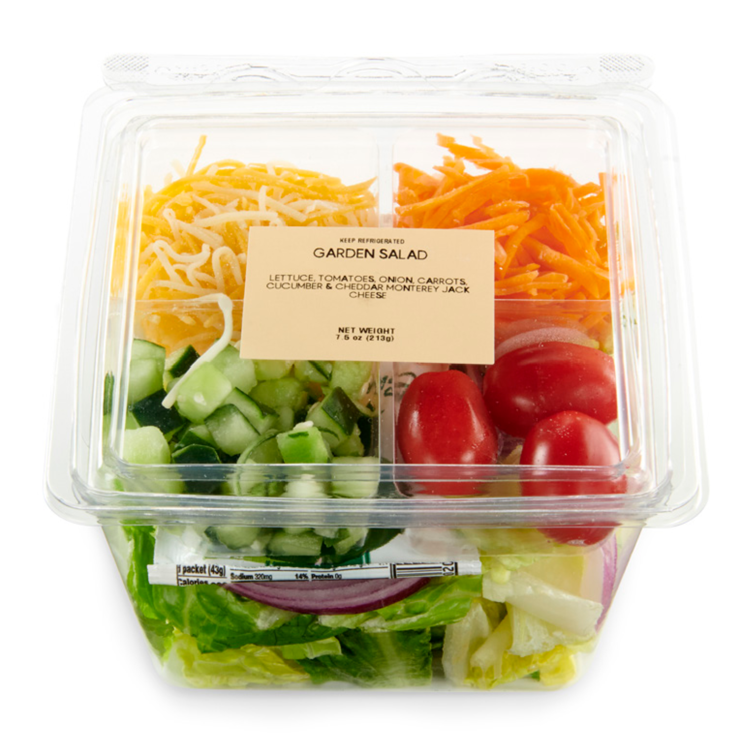 Romaine lettuce, cheddar jack cheese, carrot, cucumber, red onion, and tomato with ranch dressing.